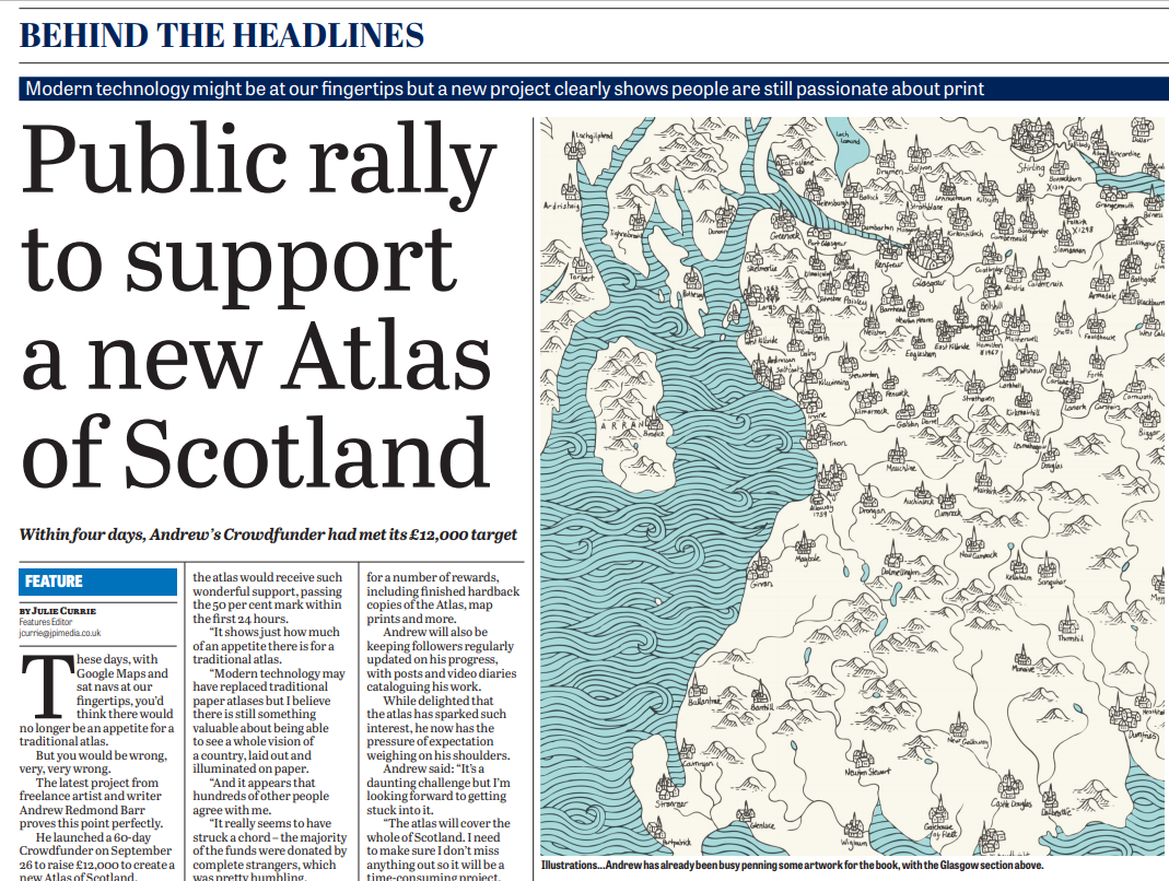 ‘Andrew’s beautiful new Atlas is almost a redefinition of cartography. It reminds the reader not only about what lies around him or her in this wonderful country, but goes much further by inspirationally re-telling so many great stories of place and people.’ – Michael Russell